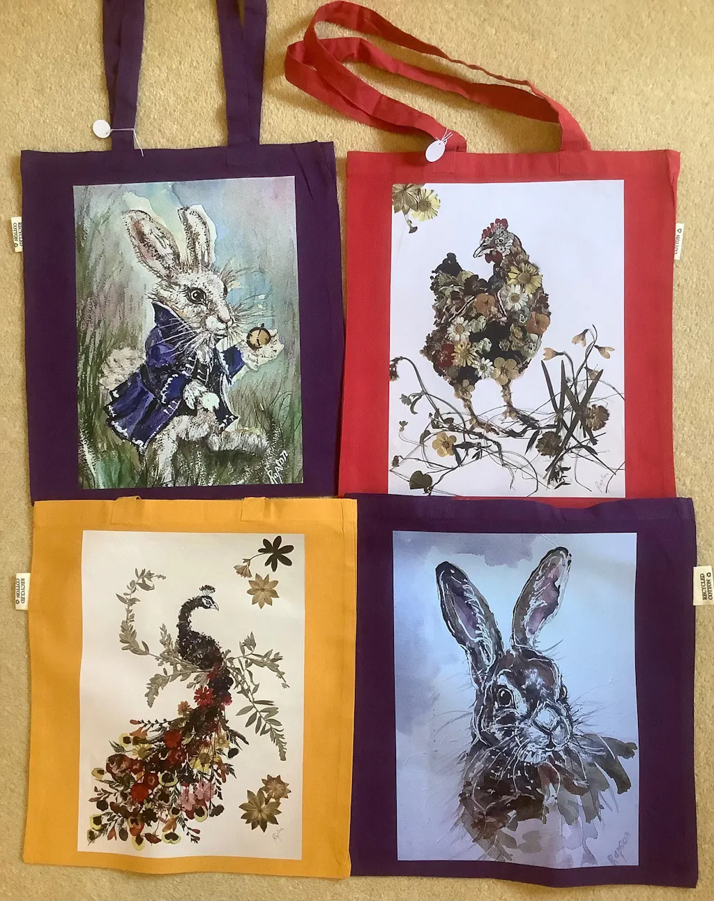 Bags overall are the same as our normal totebag at 38x42cm.
